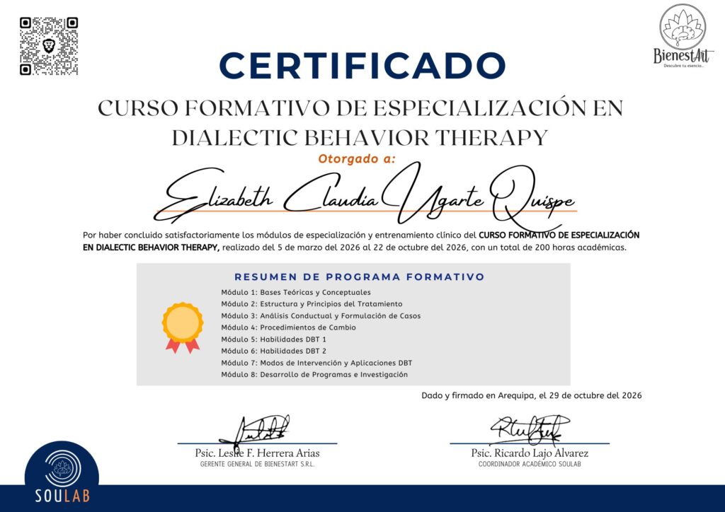 CURSO DE ESPECIALIZACIÓN EN DIALECTIC BEHAVIOR THERAPY